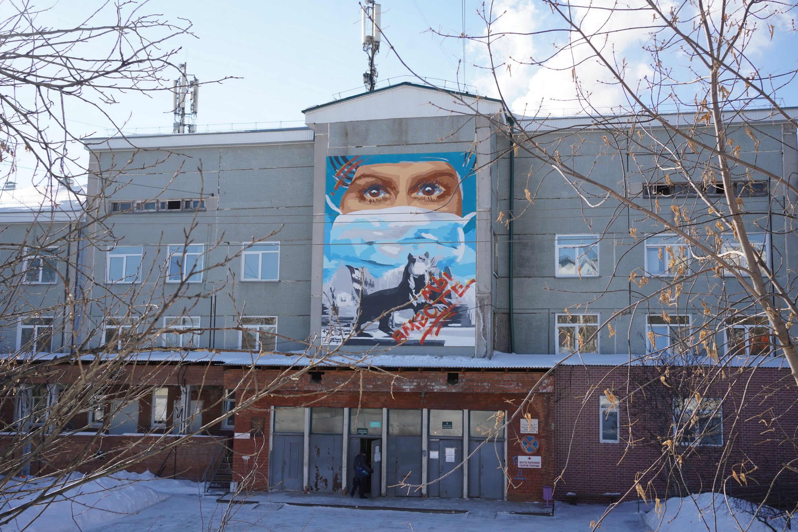 Панно в знак благодарности врачам, борющимся с COVID-19, установили на фасаде Иркутской областной инфекционной больницы.