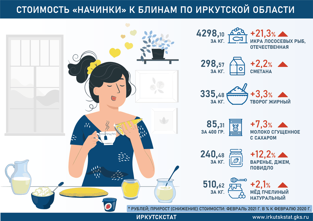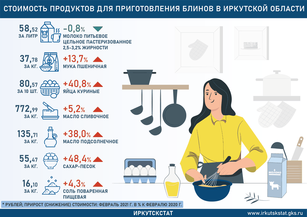 Стоимость продуктов для выпечки блинов в Иркутской области выросла за год