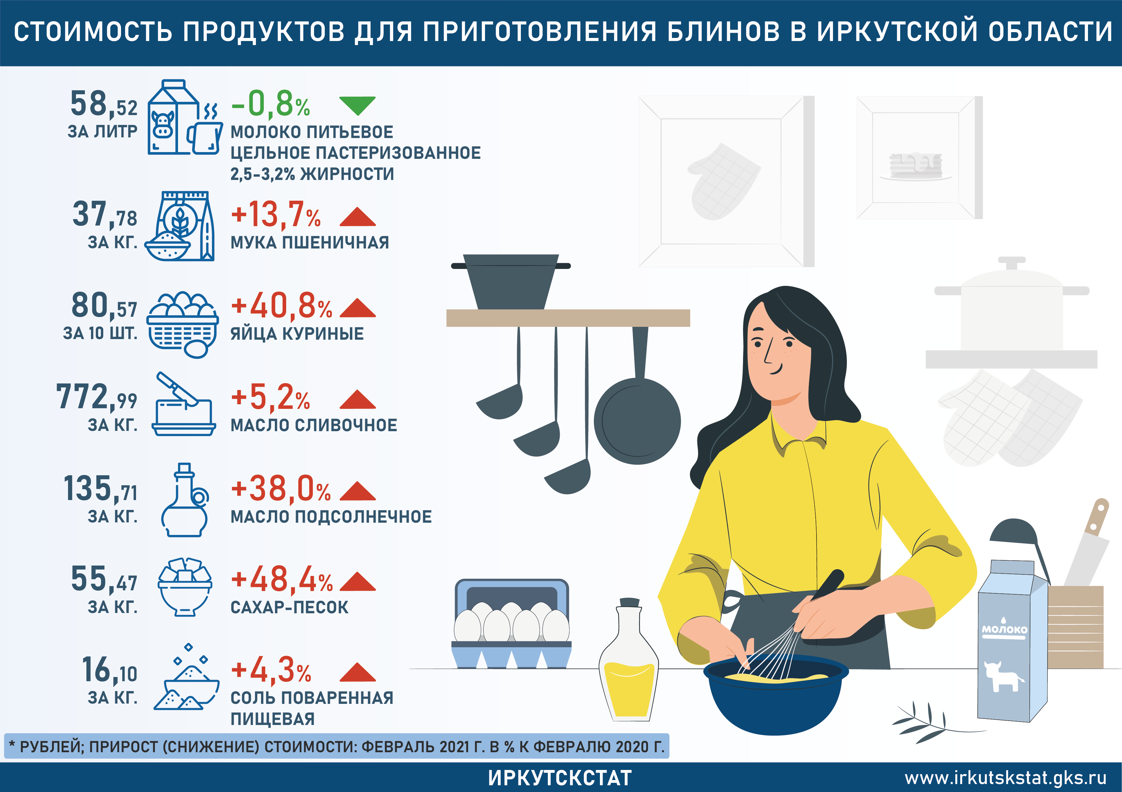 Стоимость продуктов для выпечки блинов в Иркутской области выросла за год