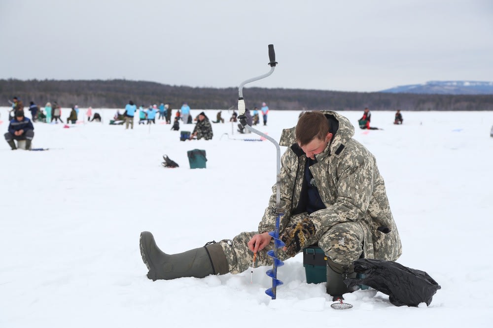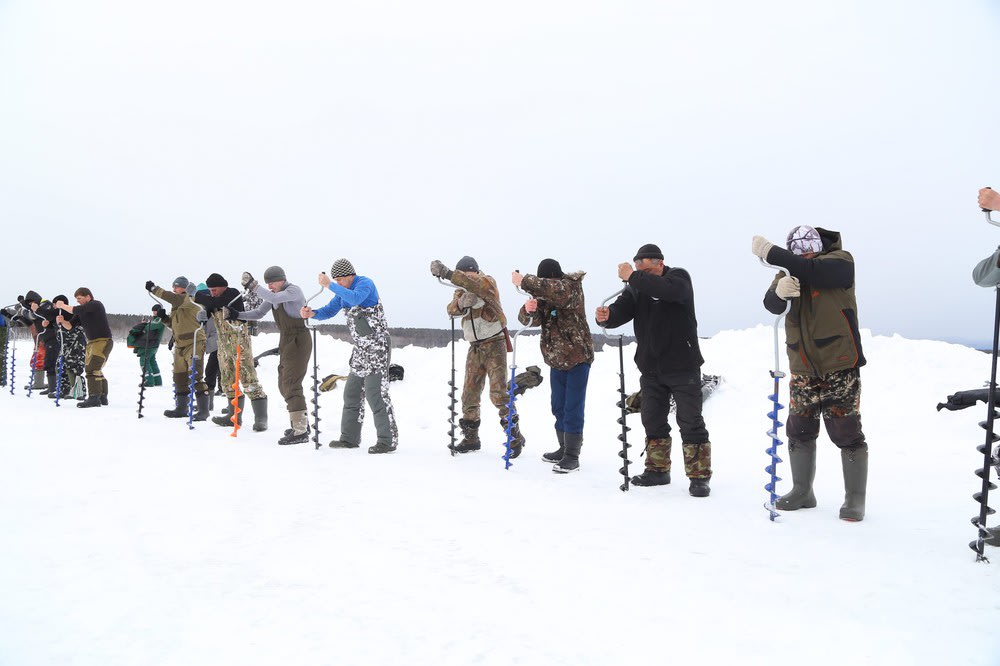 Большую «камчатку» рыбаков украшали цветные флаги и веселые плакаты на рыбную тему. Было шумно и весело, пахло дымом от костров. Радостно обнимались земляки, давно не видевшие друг друга. Мужчины с ледобурами наперевес давали последние наставления младшим членам команд. Артистки из Вихоревки пели проникновенные русские песни.