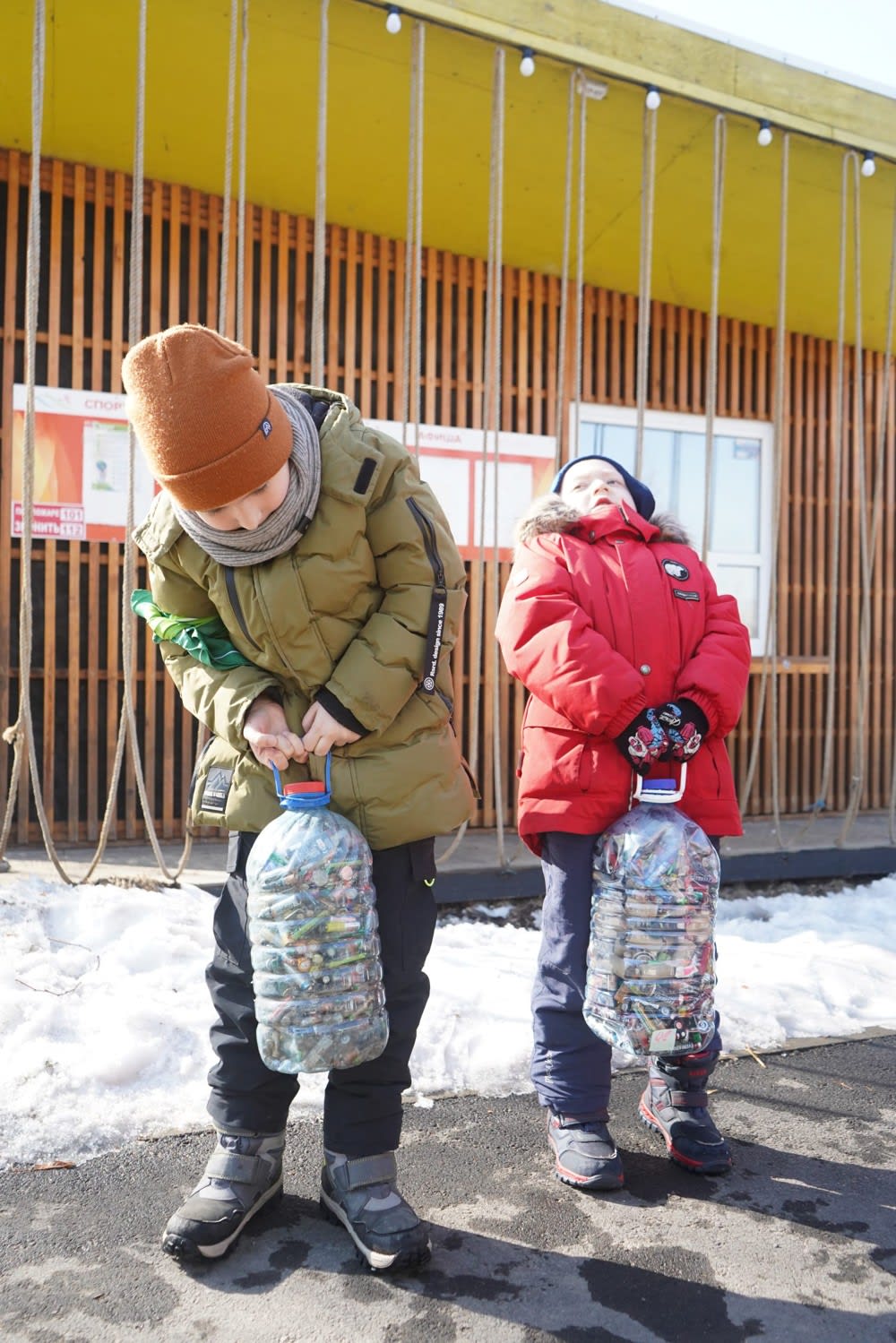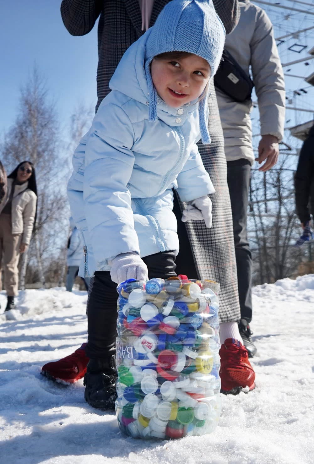 Дальше командам предлагают забросить пластиковые крышечки от бутылок в урну с трехметрового расстояния и отсортировать их по цветам на скорость.