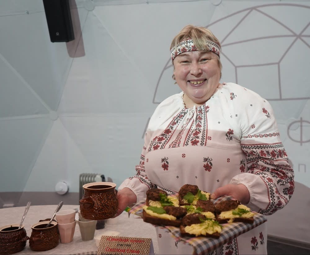 Елена Соколова из Казачинско-Ленского района привезла обилие блюд и напитков. Березовый сок, компот из клюквы и черники, отварная изюбрятина, котлеты из мяса лосятины. Отдельное меню сделала для вегетарианцев: обжаренные маслята, засоленная черемша, квашеная капуста.