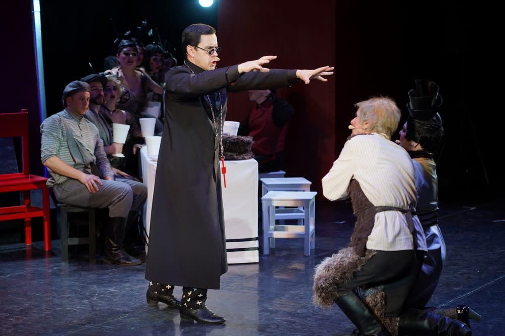 – Авторы описывают лавку гробовщика как место, где можно найти всевозможные гробы, конечно, нам не хотелось их показывать на сцене, – отметил Николай Покотыло. – И мы придумали символическую форму.