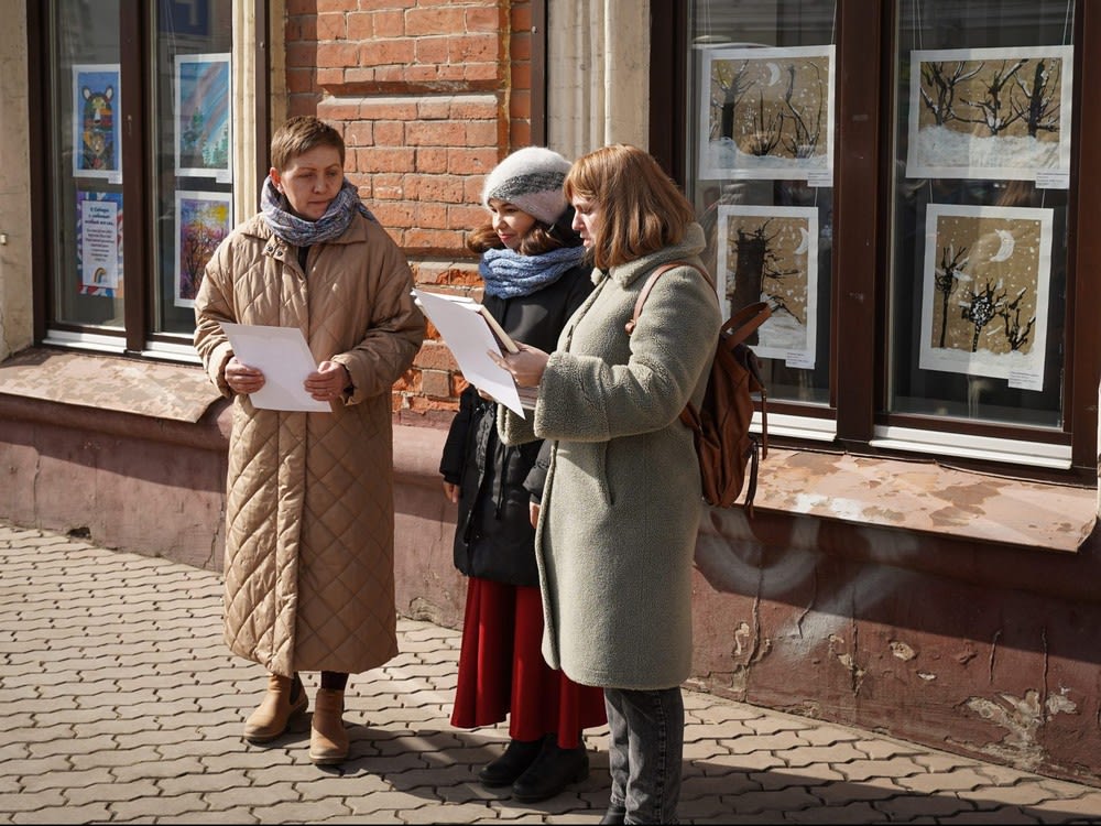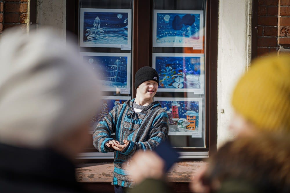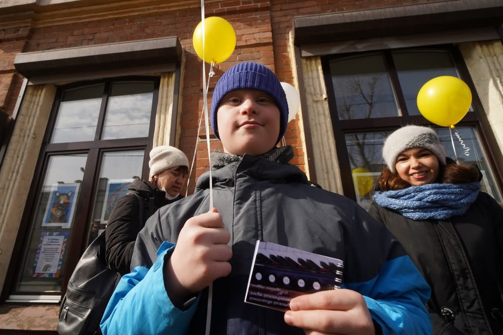 Открытие выставки приурочили к Международному дню человека с синдромом Дауна и начали с перфоманса воспитанников студии «О» для детей с особенностями развития. Художники выступили в роли артистов и под шарманку возле окон, где выставлены их рисунки, выразили свои эмоции с помощью пластики. Презентация получилась очень эмоциональной, и в финале участники сорвали аплодисменты.