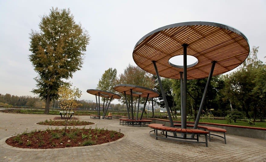 А вот элементы благоустройства в Парке Парижской коммуны определенно вызвали интерес. Бурное обсуждение возникло вокруг уличных скамеек необычной формы.