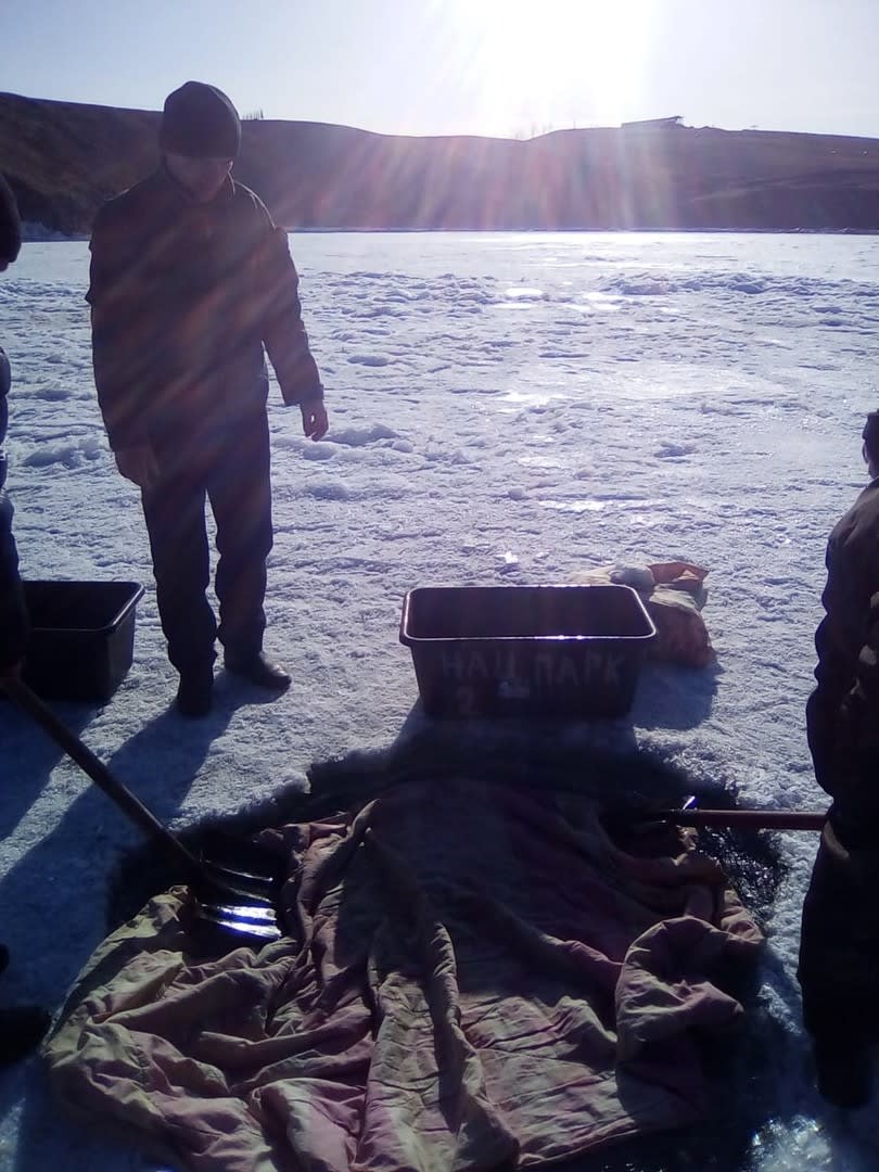Пятно нефтепродуктов обнаружено на льду Байкала недалеко от Ольхона