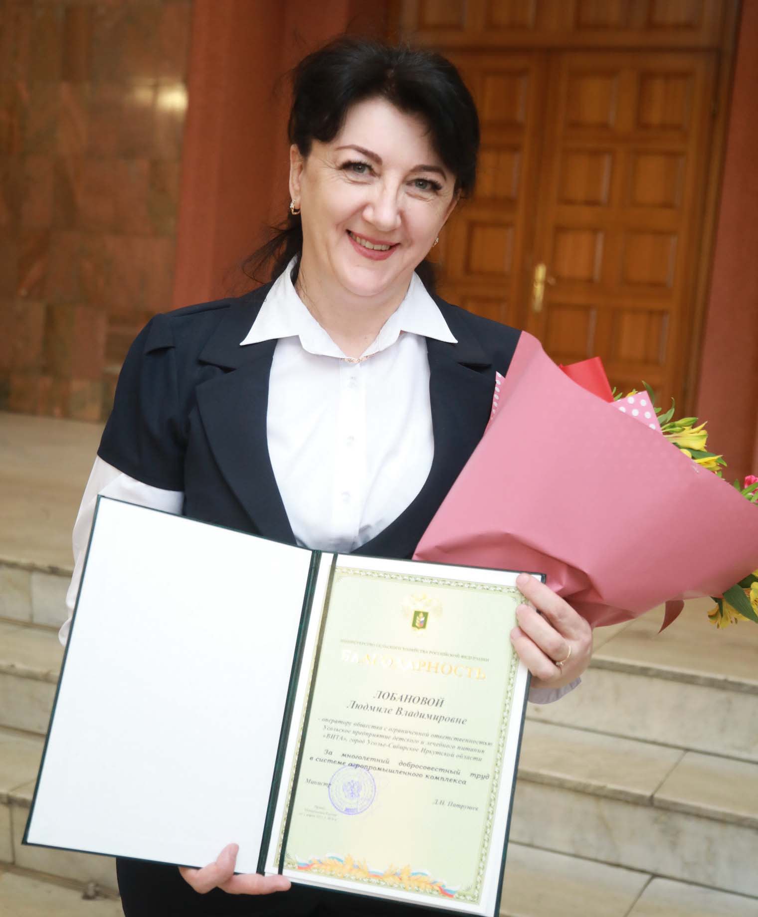 Аналогичную благодарность министерства получила из рук губернатора оператор предприятия детского и лечебного питания «Вита» из города Усолье-Сибирское Людмила Лобанова. Ее стаж работы здесь – 13 лет.