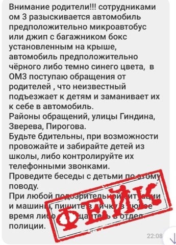 Подобные сообщения делают, основываясь на слухах, домыслах. Фейковые новости опираются, в основном, на происшествия, которые якобы случились с детьми. Также часто сообщают об особо опасных преступниках и маньяках. Авторы публикаций не проверяют информацию через официальные источники, поэтому запутывают и пугают людей.