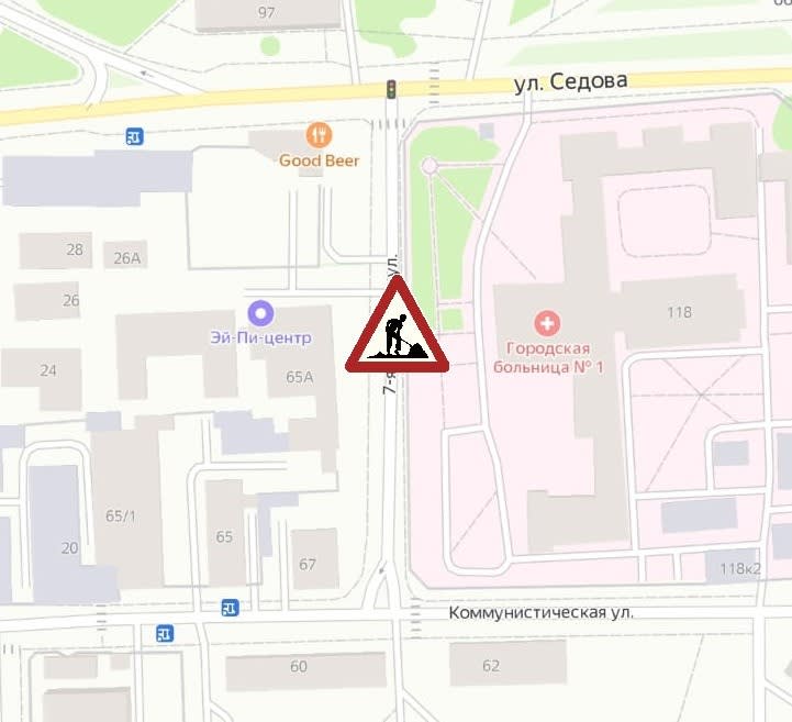 Место ремонта указана в приложении Яндекс-карты в режиме “пробки”.
