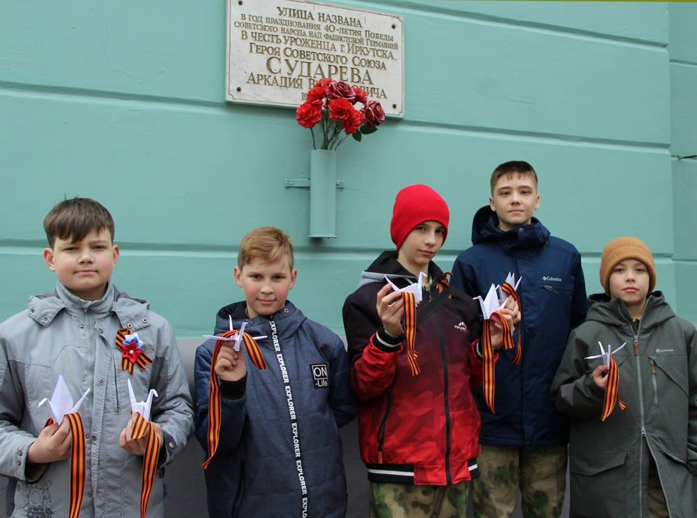 Мероприятие стартовало у мемориальной доски Героя Советского Союза Аркадия Сударева. Иркутянин прошел всю Великую Отечественную войну и героически погиб в начале Берлинской операции 1945 года в 20 лет. В последнем бою он лично убил 89 фашистов.