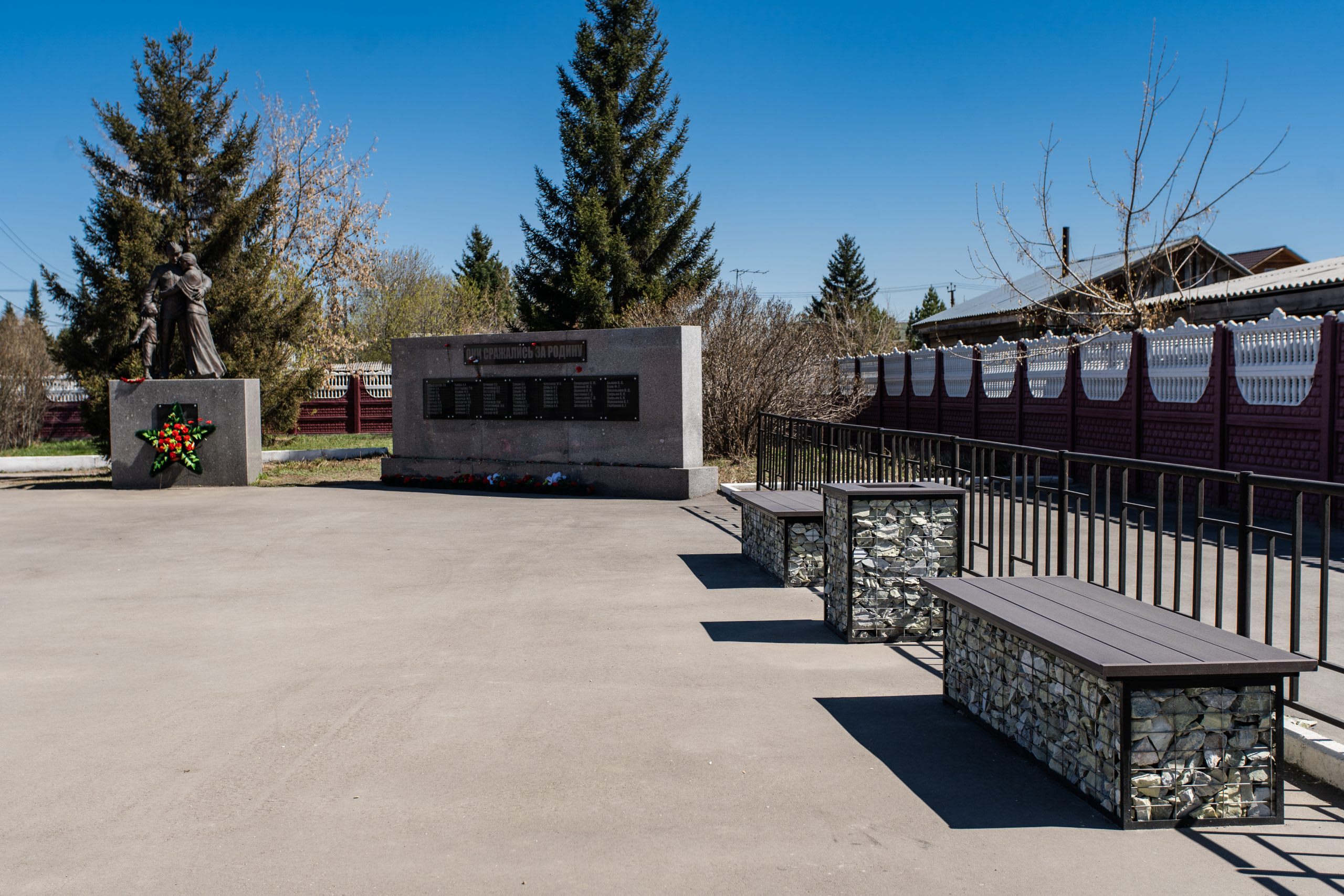 Компания «Байкалкварцсамоцветы» продолжает благоустраивать монумент «Память», подаренный селу Смоленщина к 70-летию Победы в Великой Отечественной войне. В этом году на его территории появились лавочки-габионы, наполненные кусочками полудрагоценного камня – офикальцита.
