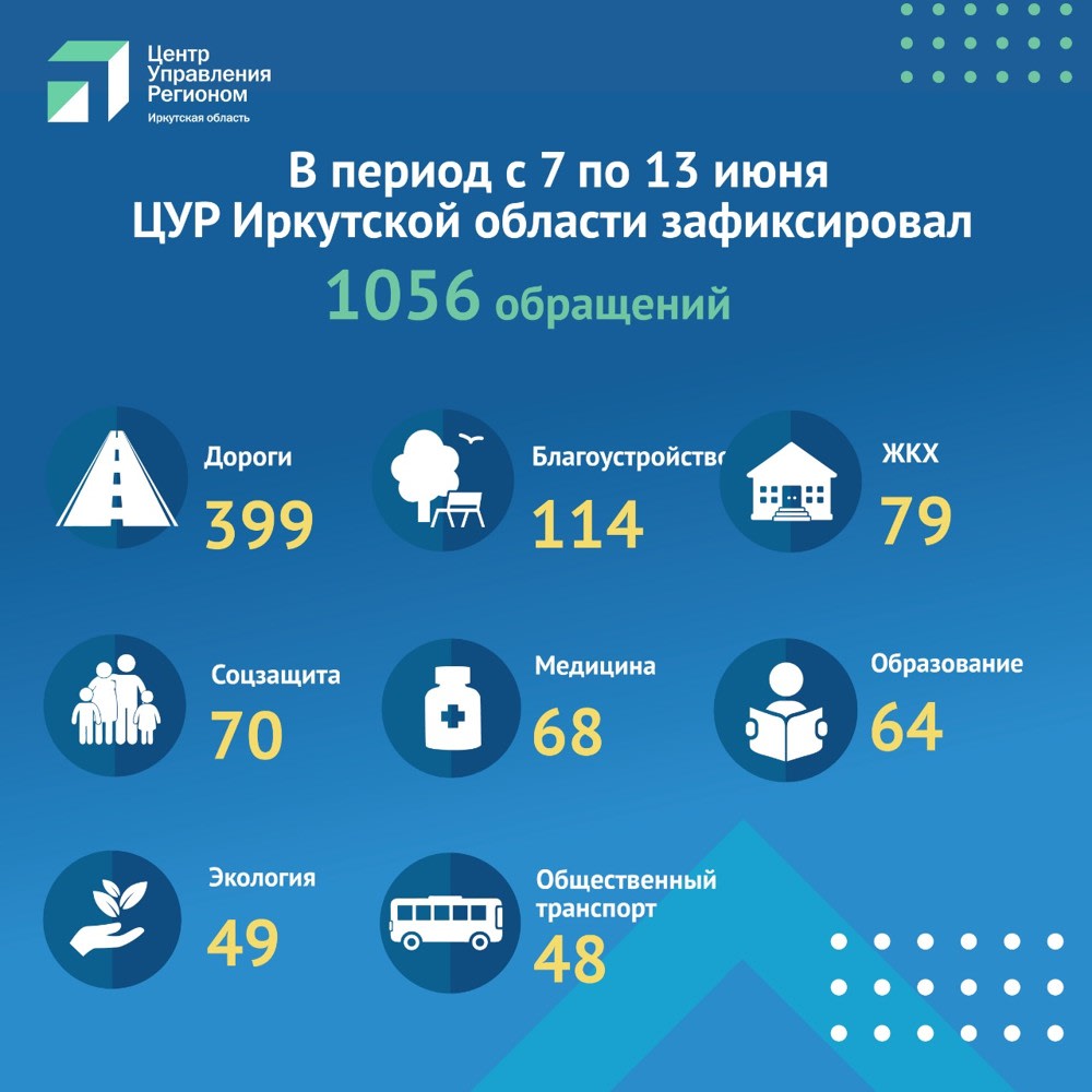 Работа детских лагерей в период распространения коронавируса, ремонт дорог волновали жителей Иркутской области с 7 по 13 июня 2021 года. Центр управления регионом зафиксировал 1056 обращений. Об этом 15 июня сообщает ЦУР.