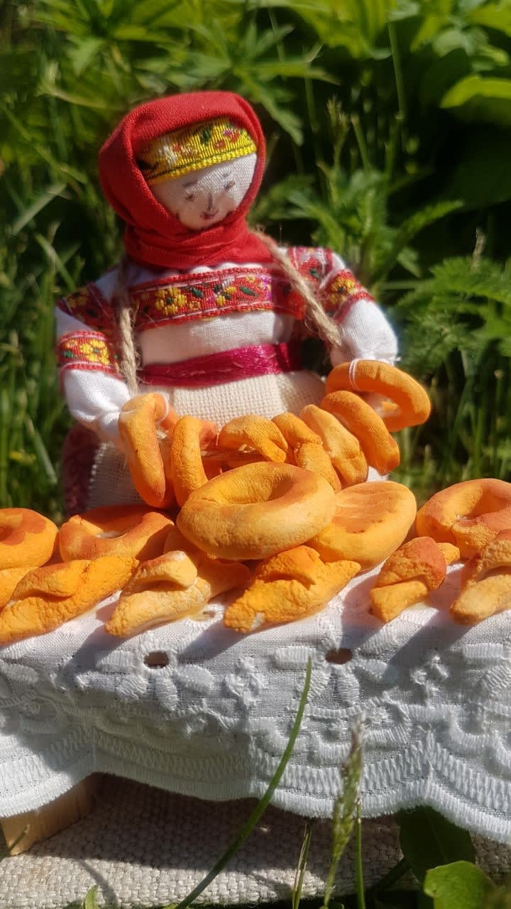 – Мне хотелось показать деревенских ребятишек, – рассказала она. – Мальчик на лошадке появился, когда мы с детьми смастерили масленичного коника. Такая кукла создавалась, чтобы маленькие казачата хорошо относились к коню. Потом пришла идея сделать всадника. Второй мальчик с керамической рыбкой родился после того, как я научилась работать с глиной. Потом сделала теленка из лыка и также создала ему пастушка. Словом, образы ребятишек рождались от предмета. Кстати, все эти куклы-скрутки созданы в традиционной технике, но дополнены авторскими предметами.