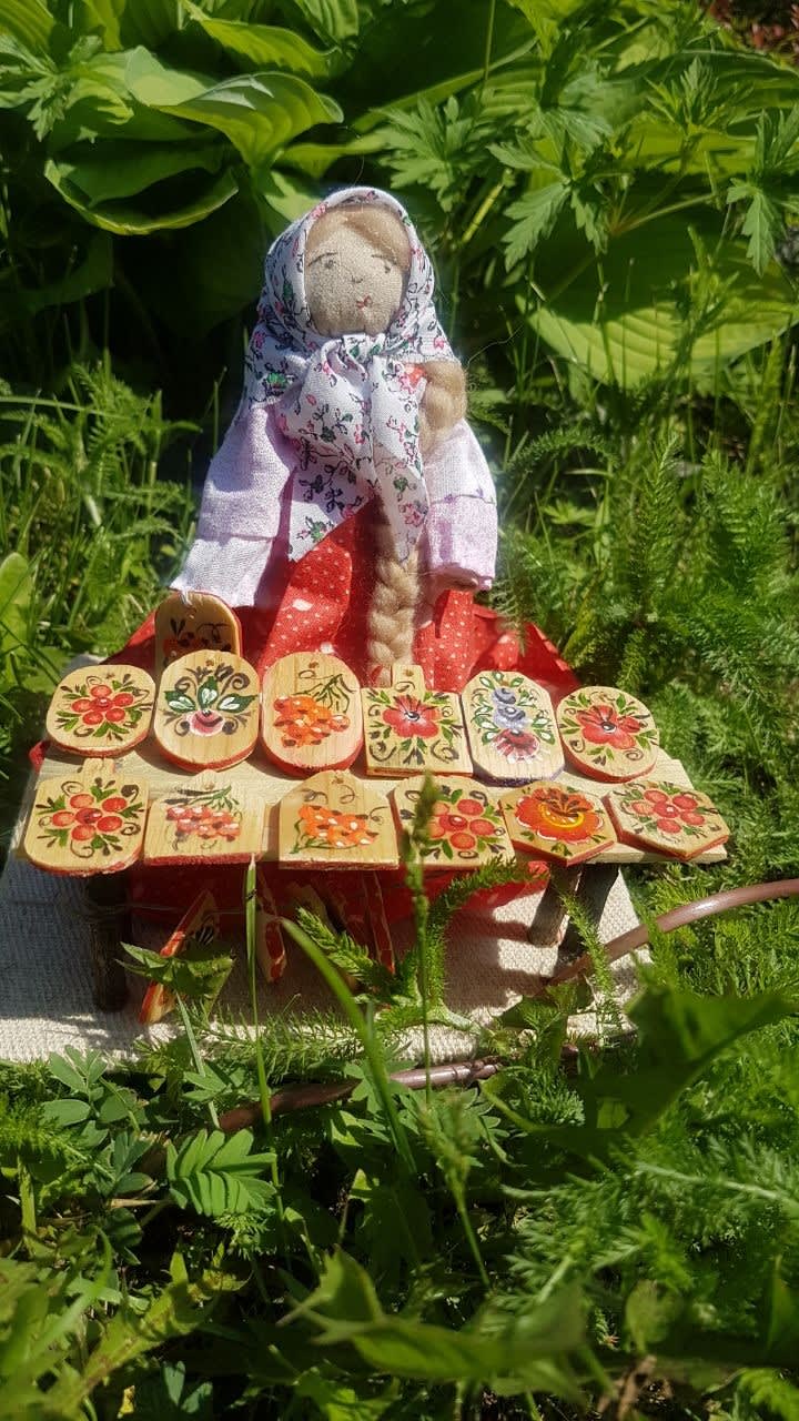 – Это коллективная работа участников мастерской «БлагоДать», – рассказала Татьяна Попова. – Мы десять лет изучали народную куклу и в этом многофигурном произведении хотели показать все наше мастерство. Здесь представлен и традиционный костюм, и сельскохозяйственные занятия, и виды декоративно-прикладного искусства, и увеселения, которые были на ярмарке: качели, карусели, самовар. Можно увидеть гармониста и певуний, цыган, а также гуляющих людей. Словом, будто вы побывали на деревенской ярмарке.