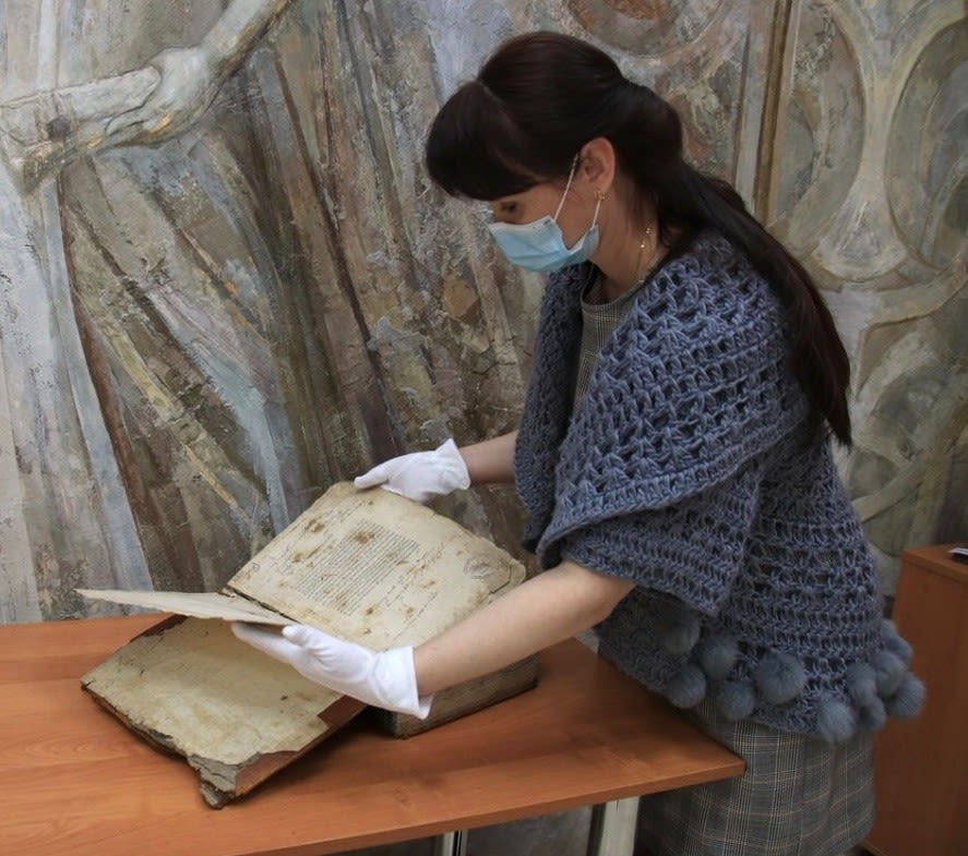 – Мы берем их в перчатках, желательно в тканевых, поскольку у нас на руках есть частички жира, а это вредно для книг. А еще они боятся света, – поясняет Светлана Нагорная.