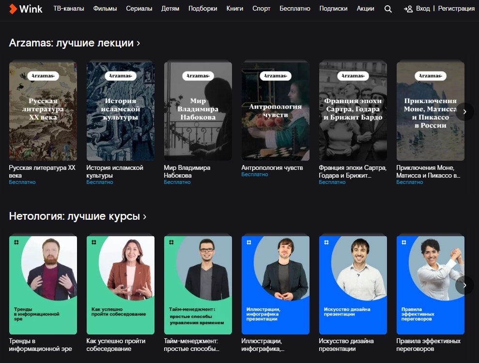 Новый раздел оптимален для изучения иностранных языков с помощью видеолекций или аудиокниг. Также для закрепления знаний есть ссылки на телеканалы на иностранных языках, представленные в Wink (английский, немецкий, французский, китайский, японский).