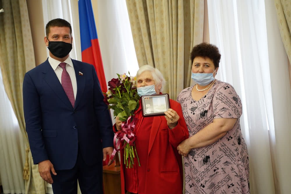 В последний раз маленькая Веруня видела отца в июне 1941 года, перед тем, как он ушел на фронт. А несколько недель назад получила от него весточку. Медаль «За боевые заслуги» погибшего в годы Великой Отечественной войны солдата ей передал сенатор Андрей Чернышев. Поисковики нашли награду рядом с останками героя.