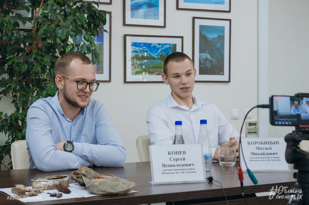 Участники поискового отряда «Искатель» им. А.И. Засухина Сергей Конев побывал в экспедиции уже в третий, а Матвей Коробицын – в пятый раз. Матвей мечтает сам найти медальон и не оставляет этой надежды. Ребята рассказали о чувствах, которые испытывают при поиске артефактов Великой Отечественной войны, и о понимании, что делают благородное дело, возвращая затерянные имена.