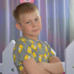Добрый, активный, ласковый мальчик. Со взрослыми и детьми в контакт вступает легко, быстро адаптируется в новых условиях. Дима любит играть машинками, собирать конструктор «Лего», нравится играть игрушечными строительными инструментами.