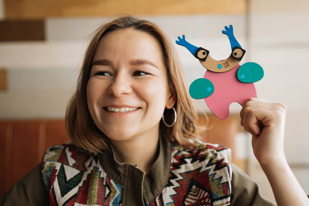 – Идея создать развивающий конструктор возникла еще в институте – темой моей дипломной работы стал дизайн детского конструктора. Тогда родился только образ композиции – космические монстрики – зумоляне из галактики Зулактика, – рассказала Мария. – В наборе не было повторяющихся деталей, и это давало большое количество конфигураций. После вуза продолжила развивать идею, подобрала материал, совершенствовала дизайн, решила применить магниты в качестве крепления. После многочисленных проб удалось найти вариант, которому не было аналога на рынке. Магнитное крепление я запатентовала. Оно получилось универсальным, и на его основе стала разрабатывать другие конструкторы. Детали-основа режутся на лазерном станке, дальнейшая обработка производится вручную.