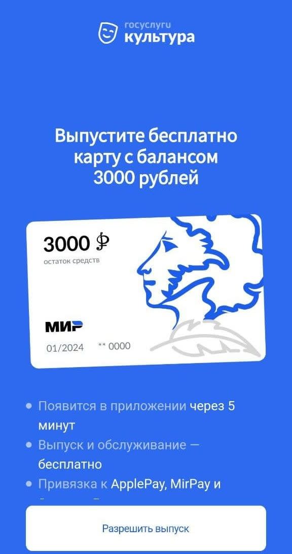 Программа “Пушкинская карта” создана Министерством культуры России и Минцифрой России для популяризации культурных мероприятий среди молодежи.