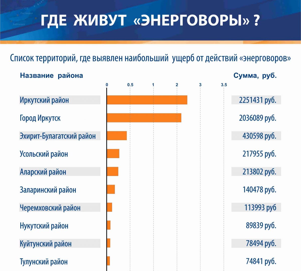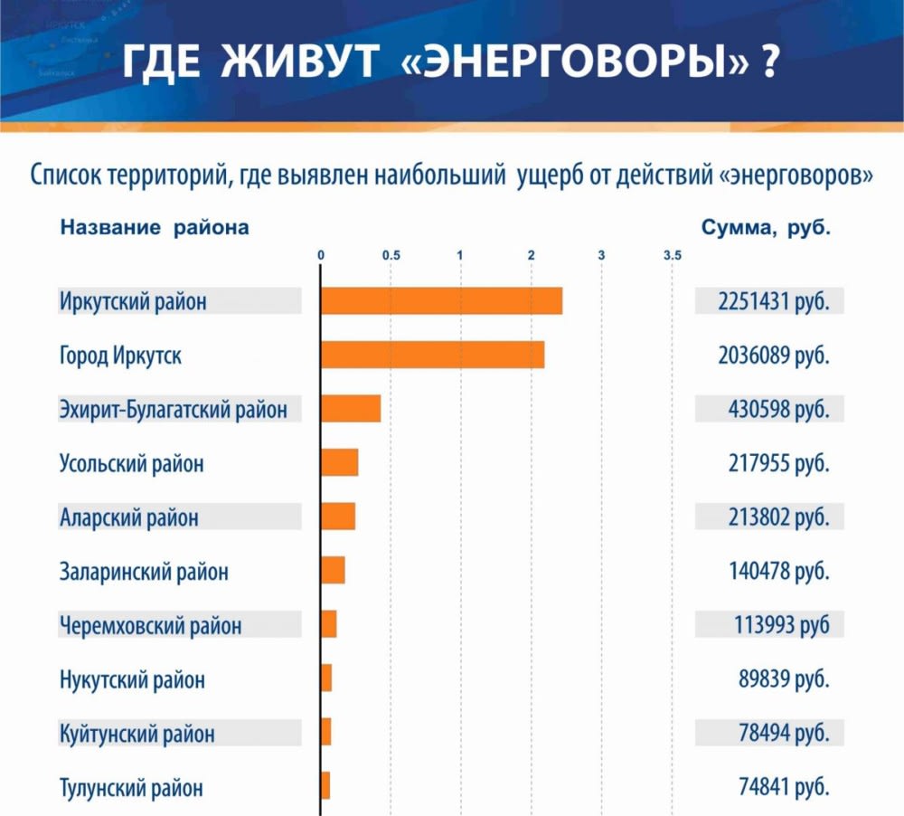 Названы территории, где больше всего живет энерговоров Иркутской области