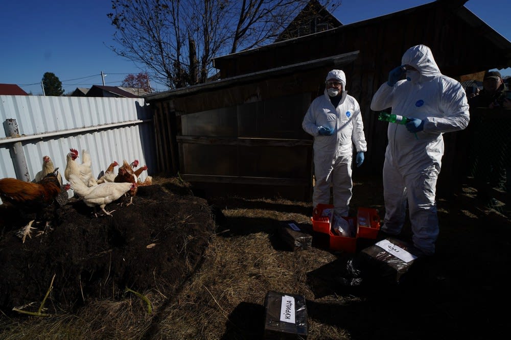 Обход начинается с центральной улицы Ленина. Каждому владельцу глава местной администрации сообщает о «режиме ЧС» и предлагает подписать согласие на отчуждение птицы с условием выплаты компенсации. Дальше за дело берутся ветеринары. Они применяют специальные препараты для бескровного уничтожения кур, а после складывают тушки в особые непромокаемые мешки и тщательно их упаковывают. Пока проводится дезинфекция сельхозпостроек, сводная группа стучит в калитку следующего двора.