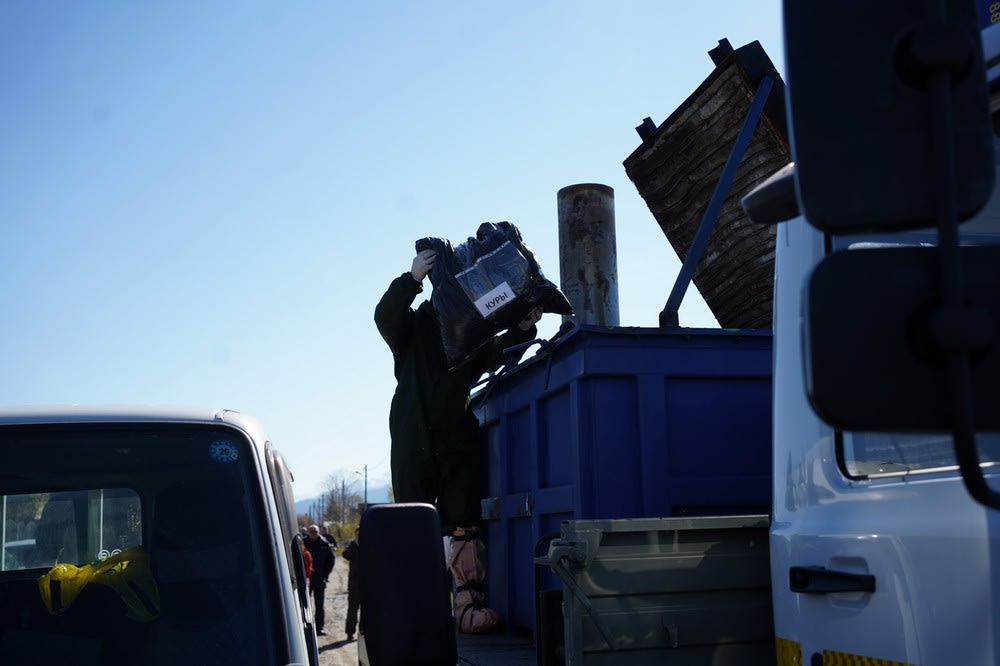 «Умерщвленных» кур вывозят за пределы поселка и уничтожают с помощью передвижного инсинератора. Это специальная герметично закрывающаяся печь с высокой температурой горения. Рядом с установкой дежурит пожарный расчет, чтобы держать ситуацию под контролем.