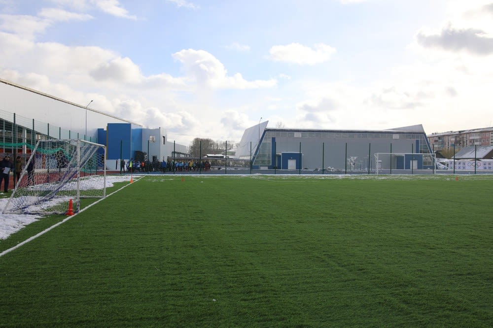 На стадионе, восстановленном после наводнения, появилось футбольное поле с искусственным покрытием. В следующем году будут закончены работы по строительству легкоатлетического манежа.