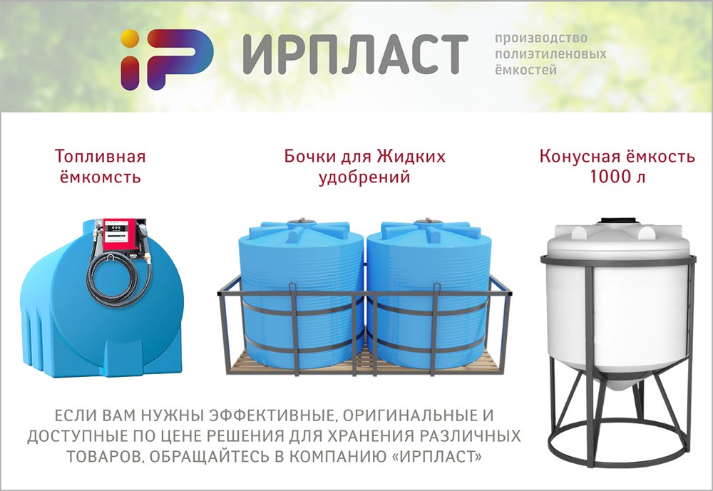 Компания «Ирпласт» с 2013 года является ведущим производителем крупногабаритных полиэтиленовых пластиковых емкостей, ее склады находятся в Иркутске, Красноярске и Новосибирске. Собственные мощности позволяют выпускать тару объемом от 200 до 10 тыс. литров. В них можно хранить разную продукцию – от воды до топлива. Ассортимент компании впечатляет: фляги и канистры, баки и кабины для душа, локальные очистные установки для канализации частного сектора, которые подойдут для небольших туристических баз, мусорные контейнеры, ящики и паллеты, дорожные ограждения.