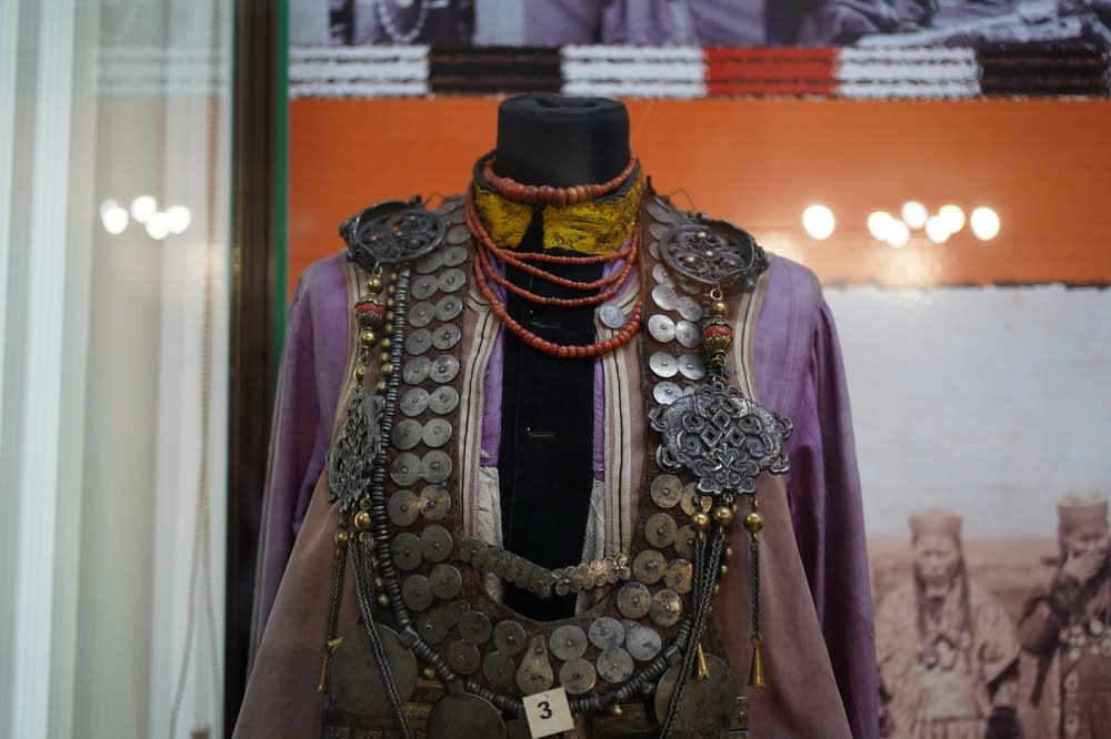 Именно карты стали сквозным образом, который объединил все тематические витрины выставки. Еще одним ярким акцентом стали увеличенные в масштабе старинные фотографии и гравюры, посвященные русскому освоению Сибири, буддизму, шаманизму, православию, истории старожильческого населения, развитию государственного управления, торговли и промышленности. Всего в двух залах представлено более 300 предметов из фондов музея. Среди них интересные артефакты, которые ранее не входили в постоянную экспозицию, – слюдяное окно, венчальные венки. Множество этих экспонатов привезено членами ВСОРГО из экспедиций.