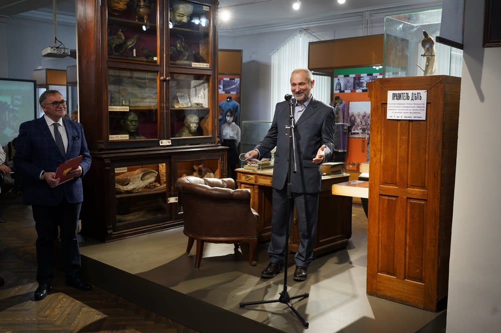 На первом этаже отдела истории гостям представили обновленную экспозицию, посвященную Восточной Сибири XVII–XIX веков и работе географического общества. Ее автором выступил народный художник России Сергей Элоян.