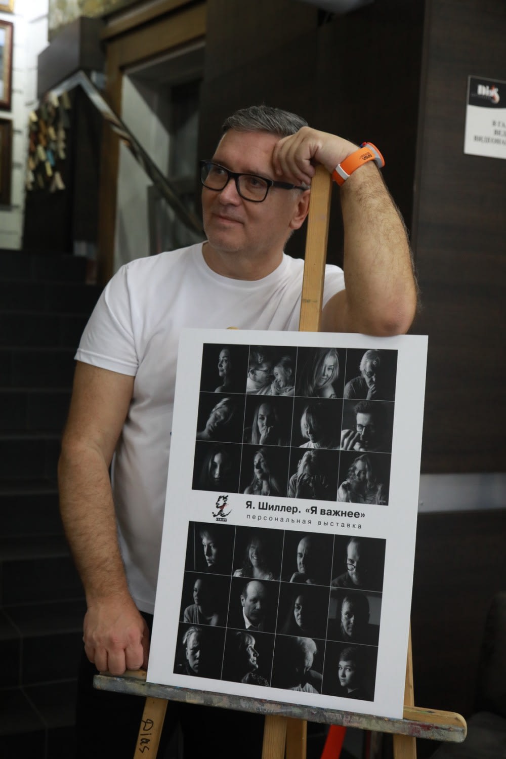 В экспозиции можно увидеть более 60 черно-белых портретов иркутян, которые были сделаны в течение двух лет в студии Шиллера. Среди них как известные личности, например, хозяйка галереи Dias Диана Салацкая, продюсер Юрий Яшников, предприниматель Сергей Перевозников, так и не медийные персоны.