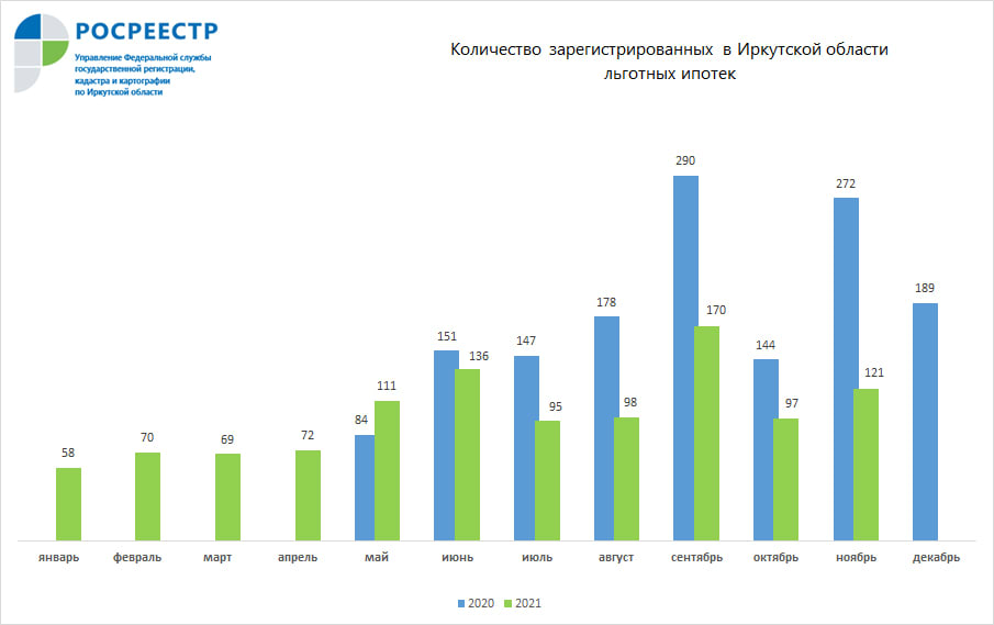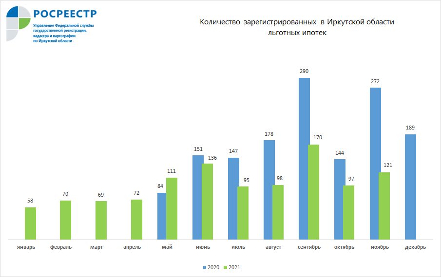 В октябре 2021 года количество зарегистрированных льготных ипотек в Иркутской области выросло на 25% по сравнению с тем же месяцем прошлого года. Как сообщает 6 декабря пресс-служба Управления Росреестра по региону, всего была 121 ипотеку по льготной ставке не более 7%.