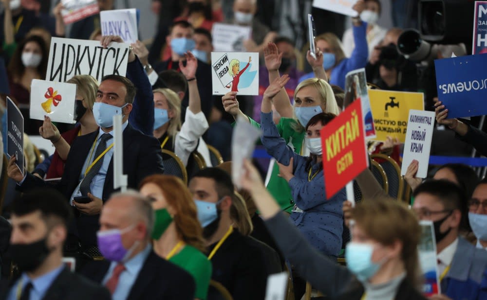 На входе к традиционным трем рубежам федеральной службы охраны – уличное оцепление, рамка металлоискателя и досмотр сумок, пост перед входом в зал – добавился кордон в темно-бордовом. Служащие Роспотребнадзора проверяли справки о сданных ПЦР-тестах и измеряли температуру тепловизором. И последний рубеж: «антиковидная рамка», распыляющая антисептик с ионами серебра. Эффективность серебра в отношении вирусов до сих пор не доказана, но, по крайней мере, оборотни на пресс-конференцию не пройдут, шутили журналисты.