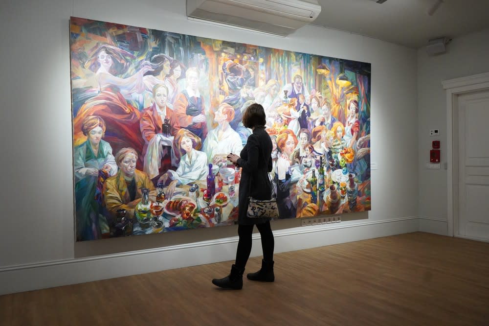 Автор рассказал, что размер картины «Четверг. Вечер» 200 × 375 см, и внести в галерею ее было непросто: