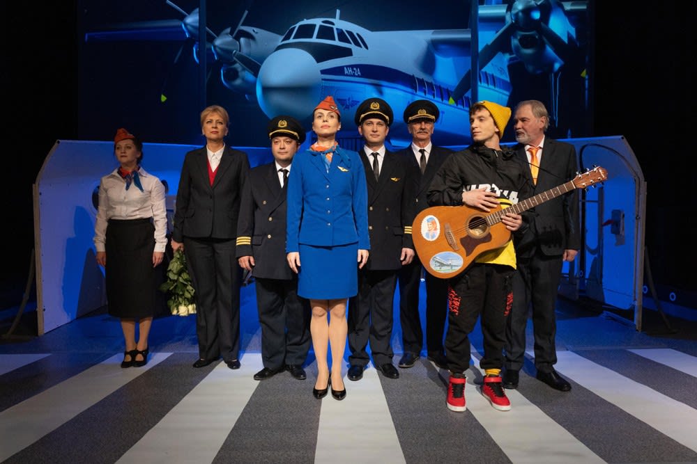 – Спектакль поставлен в формате сцены для всех, когда зрители как бы становятся соучастниками событий, – рассказал Виктор Токарев. – Нам также очень помогает видеоконтент, который снимали в аэропорту на тренажере полетов. Идея была в том, чтобы зрители не только ощутили себя пассажирами самолета, но смогли заглянуть в кабину пилота.