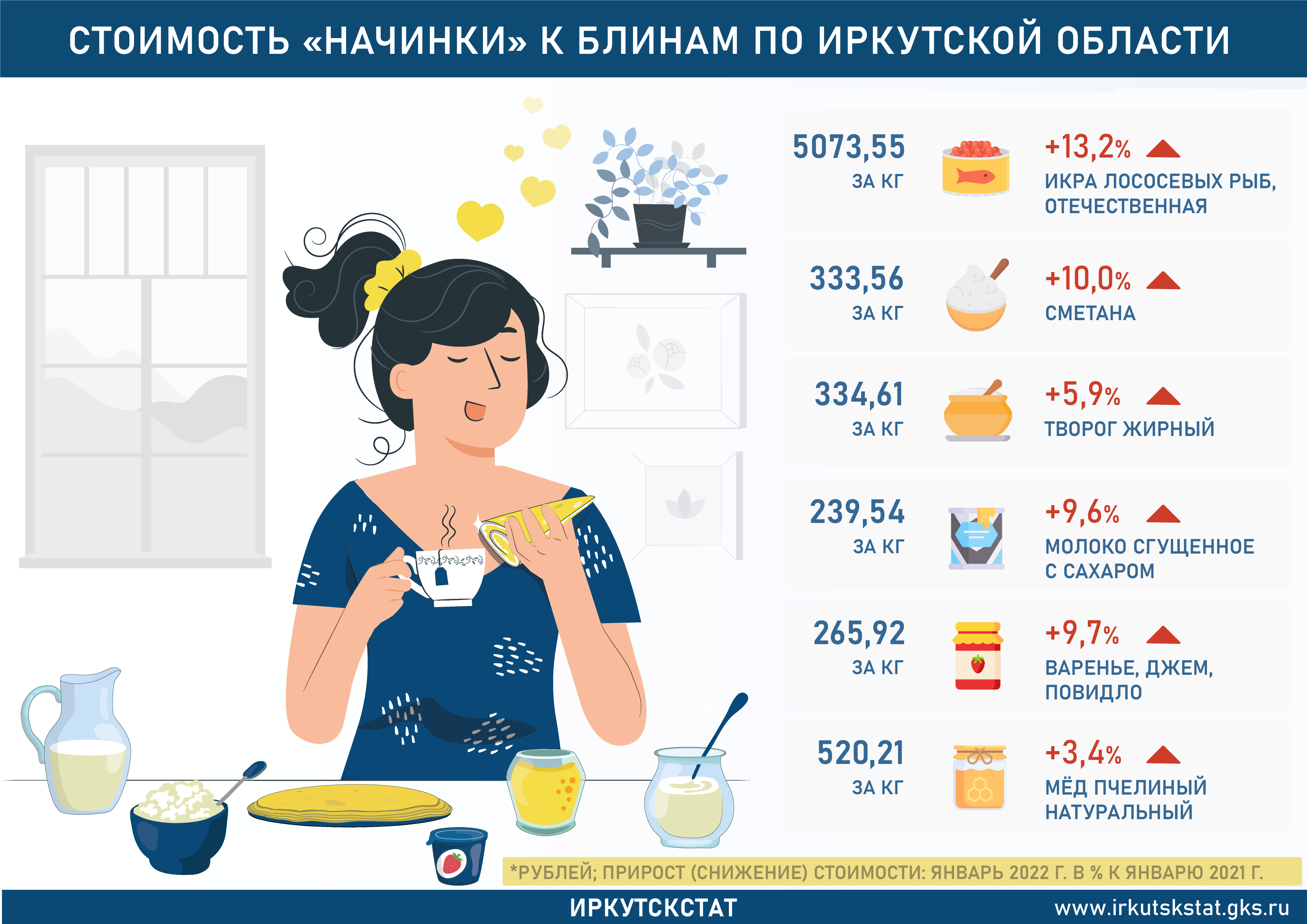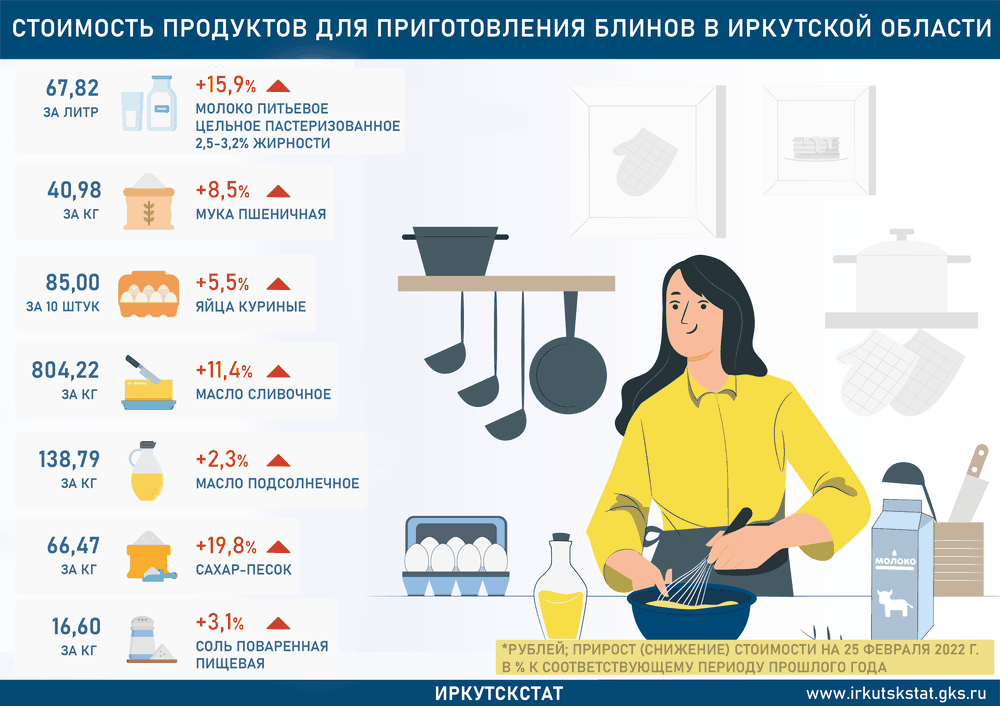 Набор продуктов для блинов подорожал за год на 7% в Иркутской области