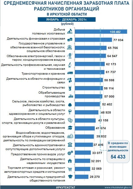 Средняя зарплата в Иркутской области составила 54433 рубля