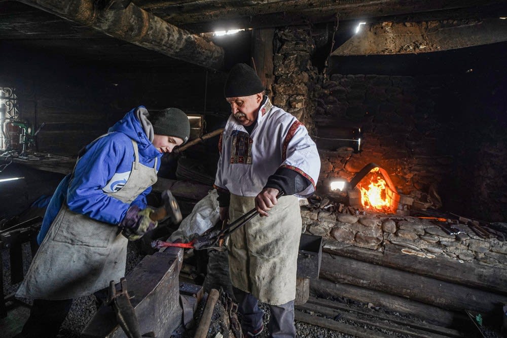 Пламя в очаге разгорается. В нем краснеет металл – найденный кусок трубы. Кузнец достает его из горна и кладет на наковальню. В планах – сделать цветок. Валерий Иванович приглашает гостей праздника поучаствовать в ковке. Откликается 14-летний Роман. Парень надевает фартук и вооружается небольшим кузнечным молотком-ручником. Сначала по заготовке ударяет мастер, следом «подмастерье». На глазах зрителей из куска трубы проявляются черты будущей железной розы.