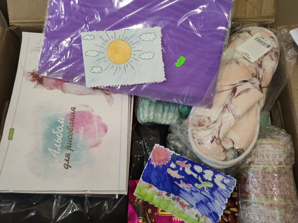 Необычную посылку обнаружили волонтеры среди принесенной гуманитарной помощи. Она собрана учащимися иркутской школы-интерната № 8. В ней аккуратно сложены детские рисунки и открытки, сделанные своими руками, предметы первой необходимости, домашние тапочки, пледы, кружки, небольшие игрушки. Видно, что дети очень старались и хотели подарить тепло своих сердец. Собранную с душой коробку волонтеры решили не сортировать и отдали на отправку в неизменном виде.