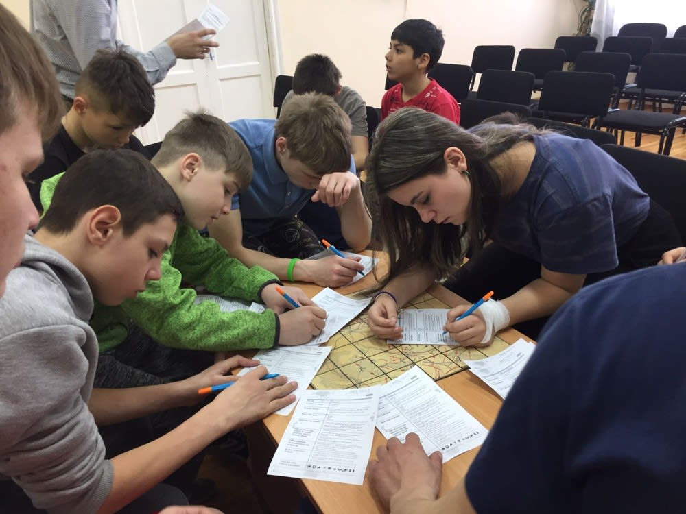 Ребята разделились на две команды. Игра началась с интеллектуальной части, в которой соперники предлагали разные варианты выхода из затруднительных ситуаций, в которых оказались выдуманные государства. Дети проявили себя умелыми стратегами и эрудированными дипломатами.