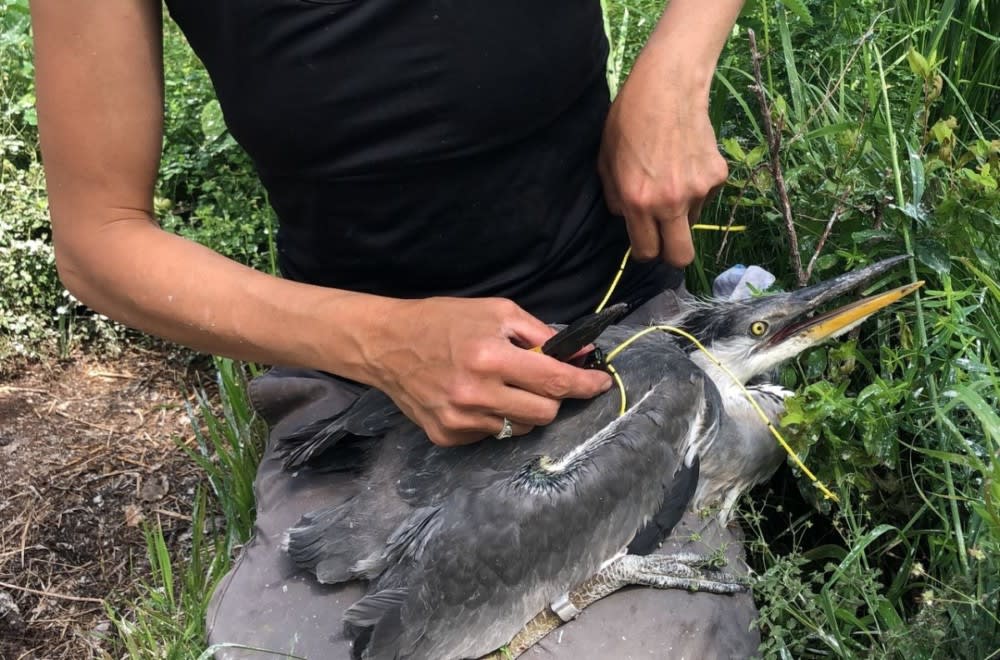 Планы мечения нам пришлось перекраивать в соответствии со сложившимися условиями. И оно было начато с восточного болотного луня и серой цапли, с ними оказалось попроще: «всего лишь» найти гнезда, подождать, пока птенцы вырастут, и прикрепить на них передатчики как рюкзачки. Также попутно повезло обнаружить два гнезда ястребов-перепелятников — тоже надели несколько передатчиков на птенцов.