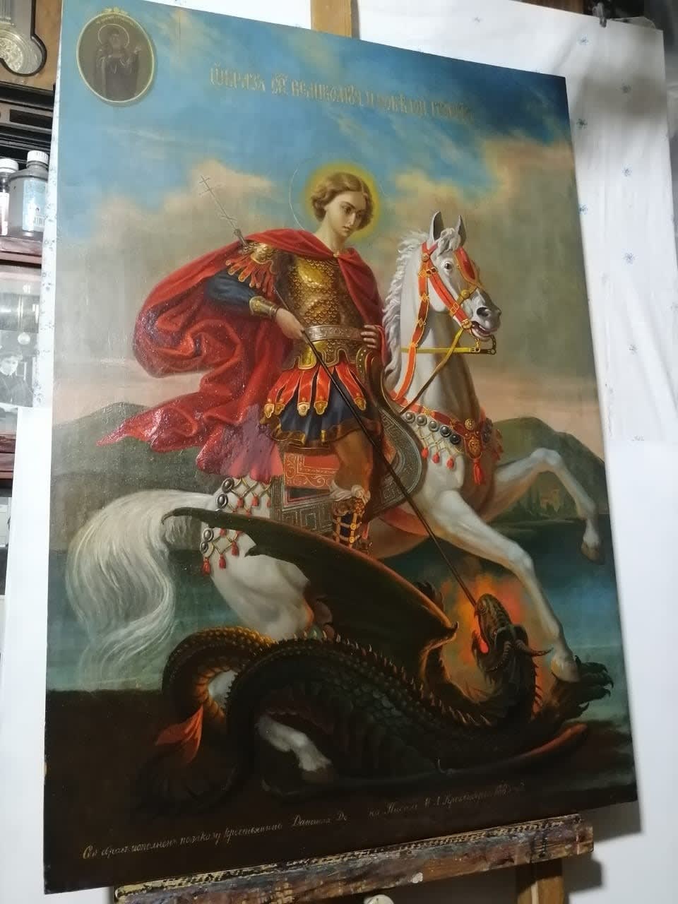 – Знаете, бывают такие сложные работы, но в случае с Победоносцем этого не было, – рассказывает Николай Натяганов. – Икона была читаемая. По стилю написания она далека от канонических византийских или древнерусских икон, скорее, похожа на живопись.