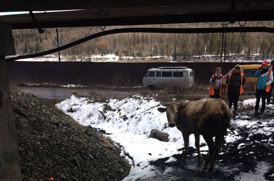 В Усть-Куте в микрорайоне Холбос 21 апреля 2022 года пожарные спасли застрявшую во льду под мостом через железнодорожные пути корову. Об этом сообщила пресс-служба ГУ МЧС России по Иркутской области.