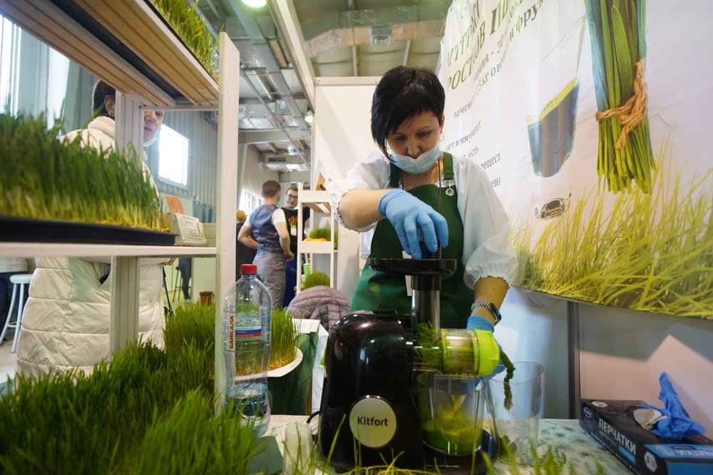 Ксения Кузьмина из Шелеховского района три месяца назад вышла на рынок с продажей микрозелени. Девушка в промышленном масштабе выращивает молодые побеги растений, которые используются в пищу и для украшения блюд. Посетители с интересом рассматривали буйство зелени – зеленый горошек, розовый кольраби, редис.