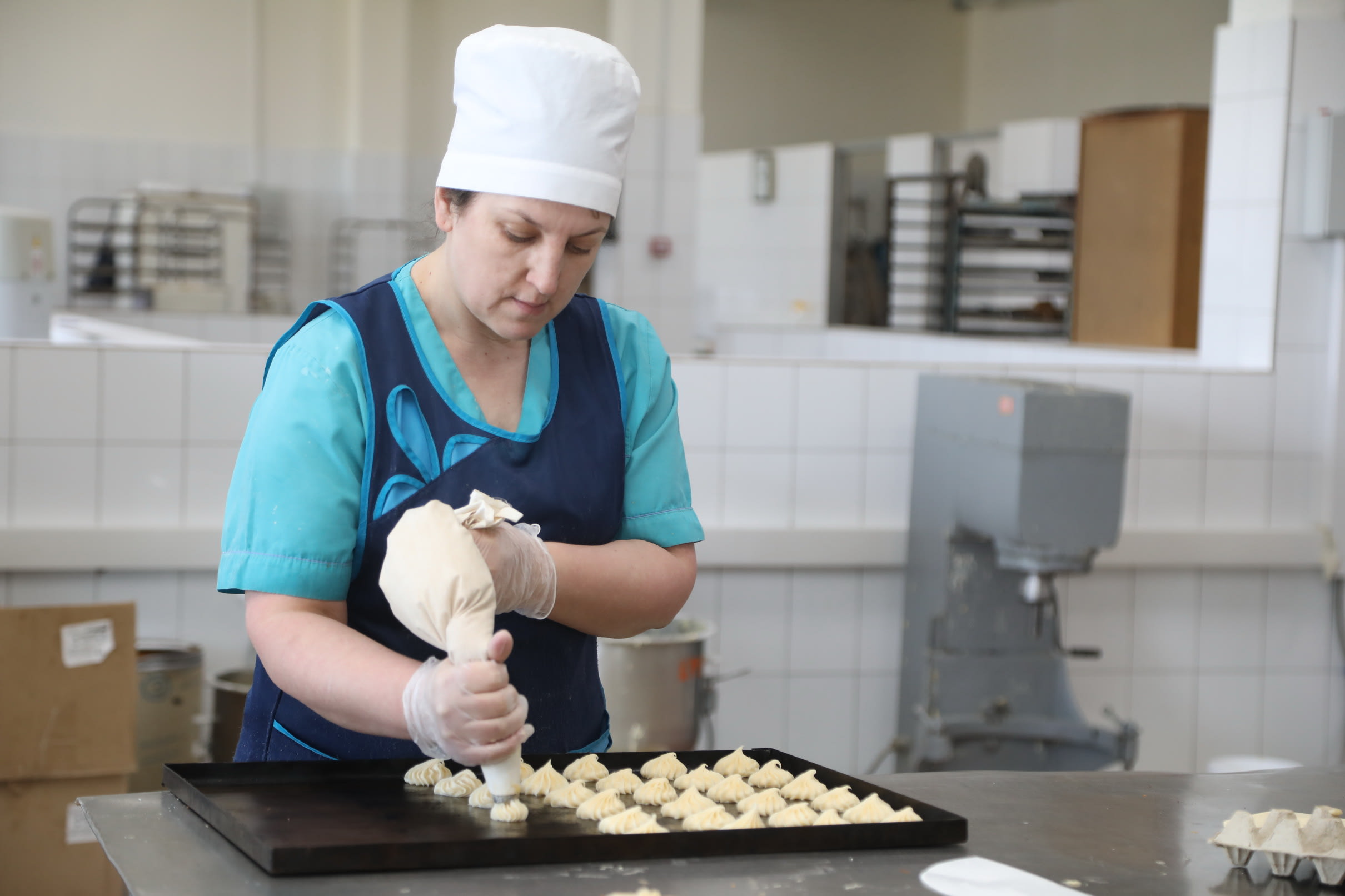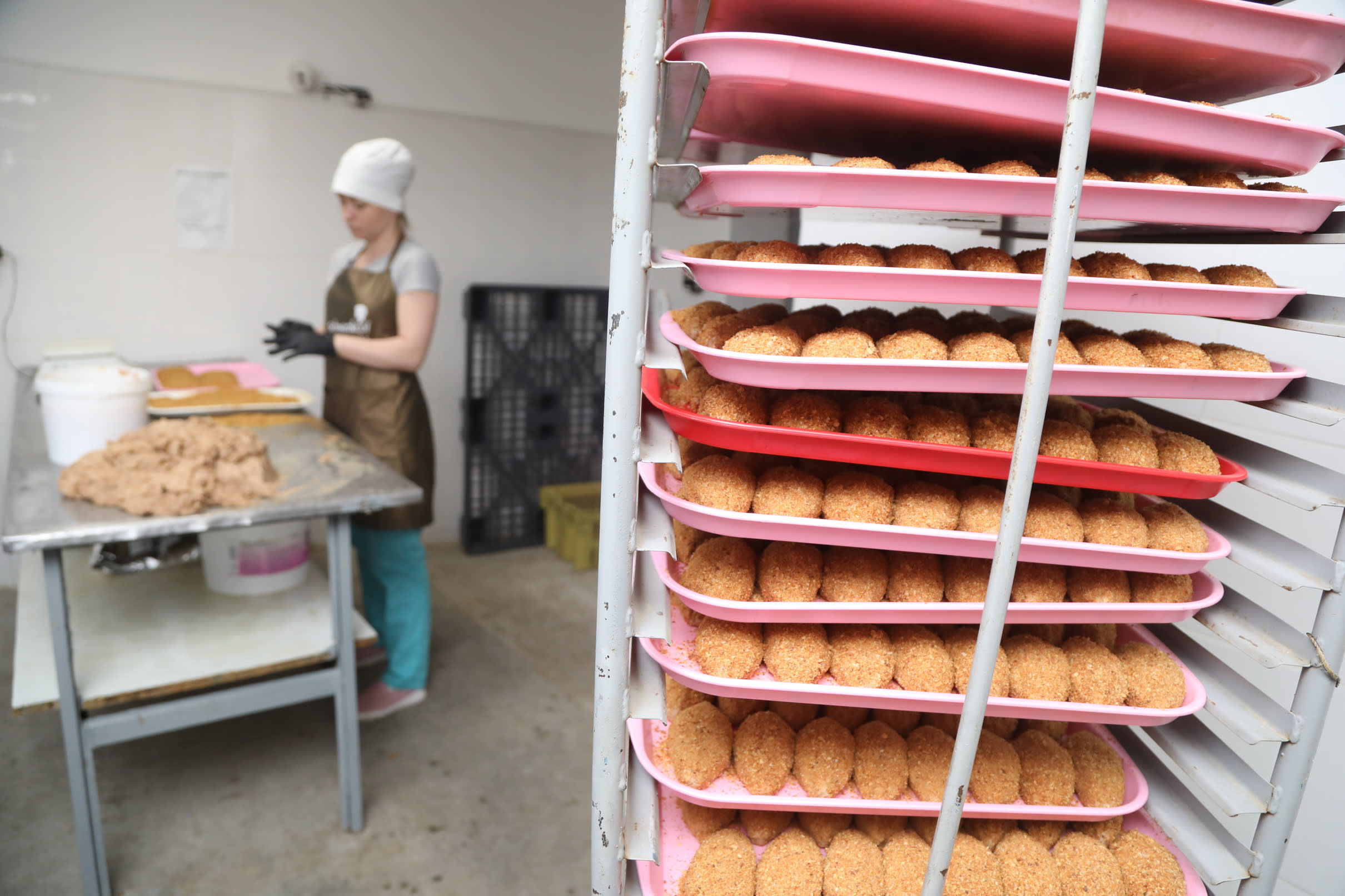 – Тут делают торты и пирожные с использованием медового полуфабриката, – рассказывает заведующая производством Юлия Никонова. – В сутки один пекарь готовит свыше тысячи изделий.