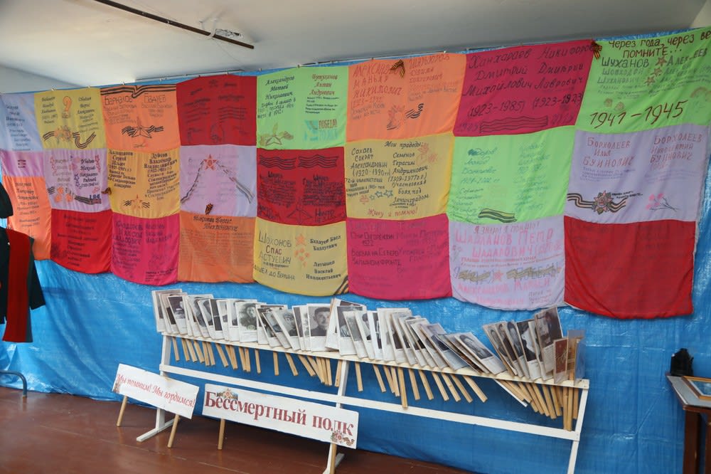 В музее школы бережно хранится история села. Портреты ветеранов Великой Отечественной войны соседствуют с фотографиями современных героев, отличившихся на Северном Кавказе, в Афганистане. Пока руководитель музея Анна Ошоронова проводит экскурсию, ребята и педагоги размещают на стенде Платок Славы. Это огромное полотно, состоящее из множества платков с именами участников войны, дедов и прадедов. Так воспитывается патриотизм.