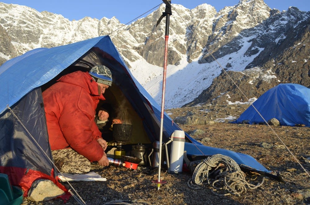 Анна уже совершала восхождение на Мунку-Сардык – в студенческие годы она посещала секцию горного туризма Иркутского политеха. В первый раз в мае из-за непогоды контрольно-спасательная служба не пропустила группу, а летом маршрут стал сложнее из-за водной переправы. Весенний период, по мнению Анны, наиболее благоприятный для восхождения: река еще подо льдом, нет зимних морозов, дело только за погодой. Группе повезло – днем было тепло, в куртках – жарковато.