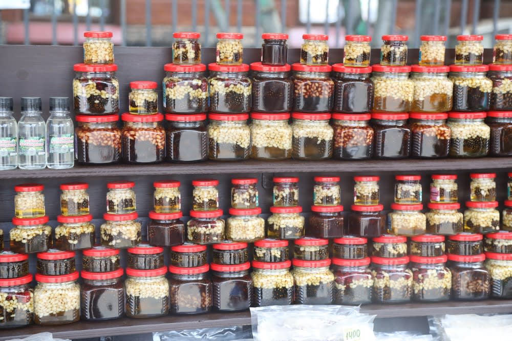 Их соседи – ИП Алексея Дорогина из поселка Большая Речка привезли на ярмарку дикоросы: варенье из сосновых шишек и кедровых орехов, таежное пихтовое масло, цукаты из шишек, а еще сибирские чаи из чабреца, иван-чая, саган-дайля.